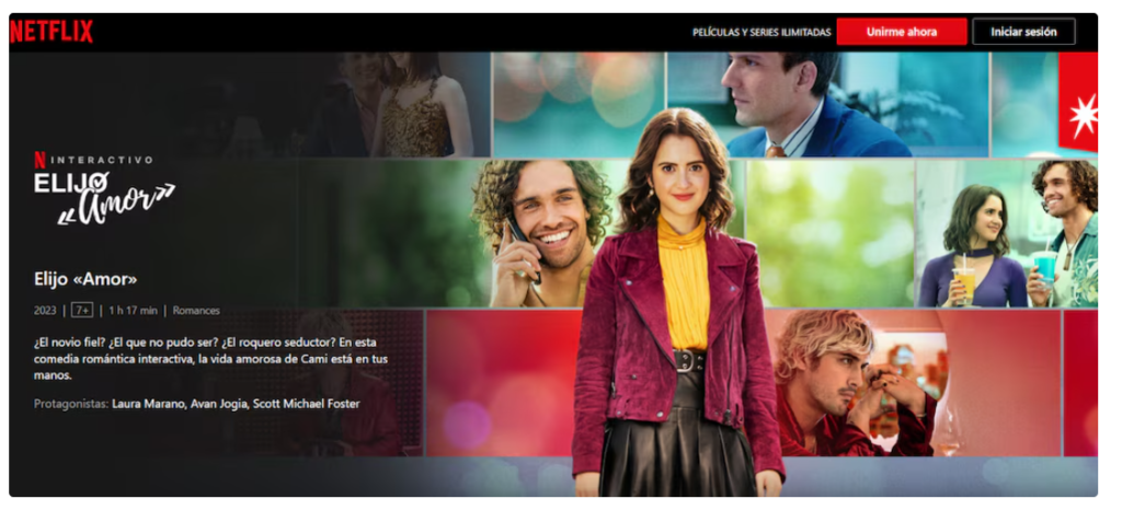 En Netflix hay películas y series interactivas que permiten a los espectadores tomar decisiones por los protagonistas mientras ven el contenido. Un ejemplo de esto es la película Choose Love o Elijo Amor, donde el usuario puede elegir si la protagonista permanece con su novio de toda la vida o se aventura con un nuevo compañero de trabajo.