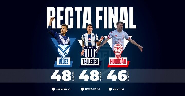 7) Huracán gana y Talleres gana: en este escenario, la T sería campeón con 51 puntos; el Globo quedaría en 49 y Vélez sería tercero con 48.
