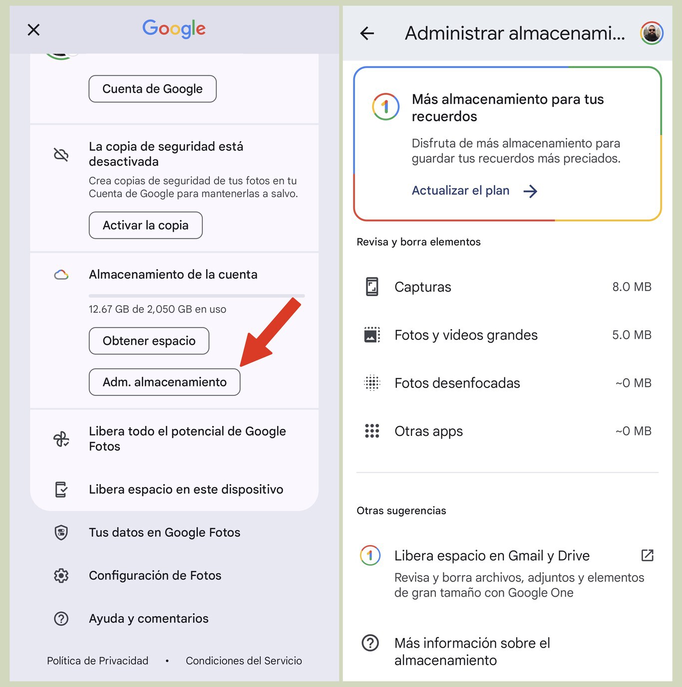 Limpiar rápidamente espacio en Google Fotos