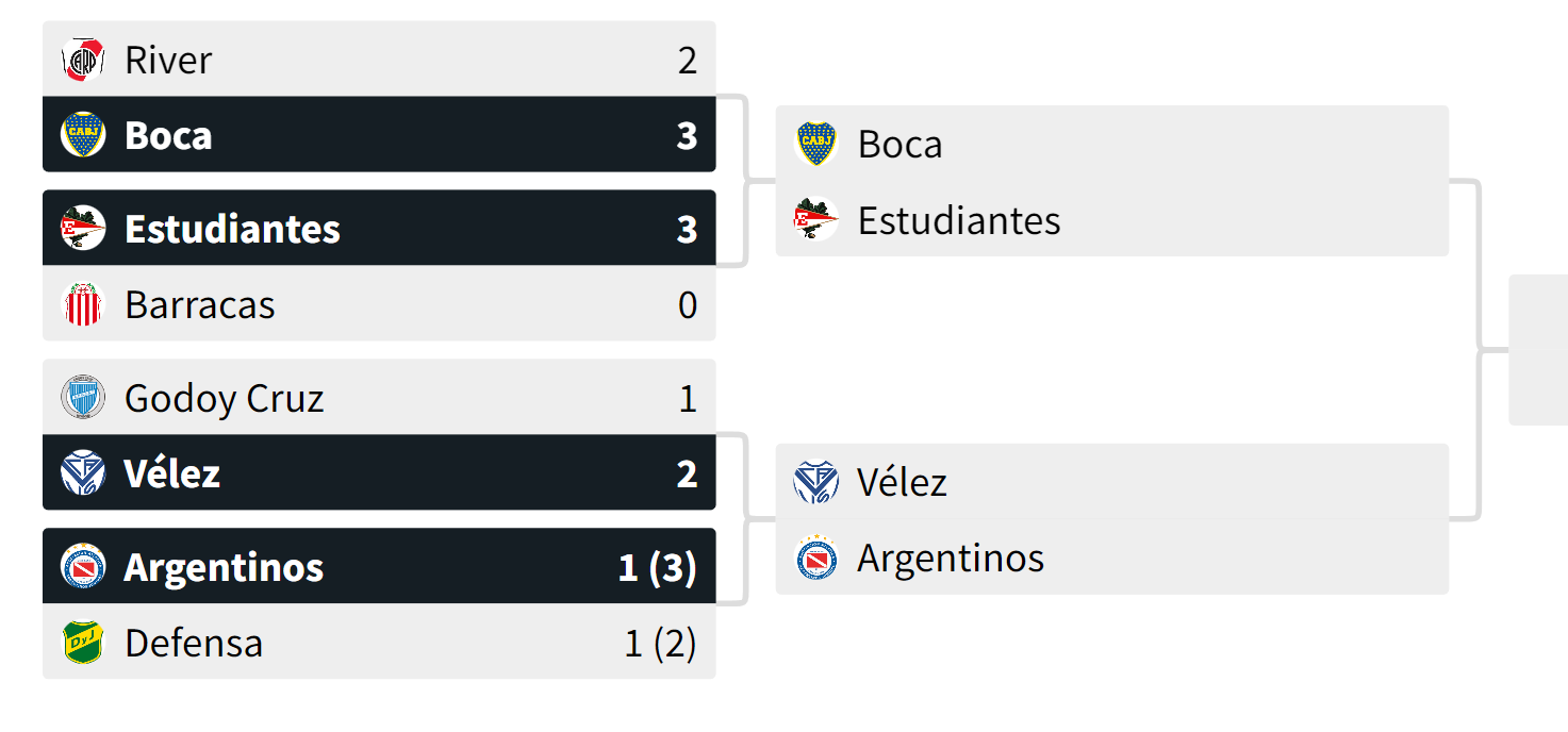 Argentinos y Defensa definieron al primer semifinalista por penales, después de haber igualado 1-1 durante los 90 minutos reglamentarios. Allí, el Ruso Rodríguez se hizo gigante bajo los tres palos, contuvo dos de los remates del Halcón en una serie totalmente errática (fallaron siete disparos sobre 12 ejecutados) y luego liquidó pateando él mismo el penal del 3-2 definitivo.
