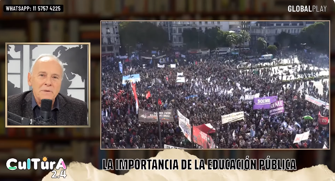 Osvaldo comenzó el programa mencionando la marcha por la educación pública, destacando su magnitud como la movilización más grande de la última década.Remarcó la atmósfera de alegría y fiesta durante la marcha, enfatizando que las batallas en la calle se libran con alegría o no se libran.