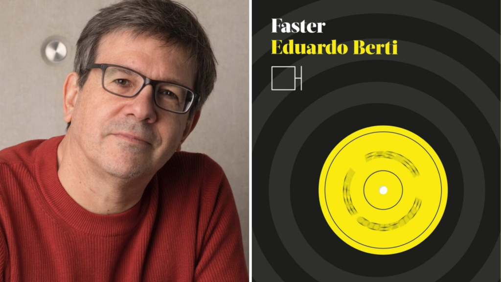 En Faster , Berti se adentra en un relato con fuertes raíces argentinas, a partir de un episodio de su adolescencia. Con apenas 13 o 14 años, junto a un amigo, decidió entrevistar a Juan Manuel Fangio, leyenda del automovilismo mundial, para una revista escolar que ambos habían fundado en 1978, en plena dictadura militar en Argentina. La hazaña no solo resultó en una entrevista con Fangio, sino que se convirtió en un episodio decisivo en su vida y en su formación como periodista y escritor. Además, el nombre de Faster hace alusión a la canción de George Harrison, integrante de los Beatles, otro ícono cultural compartido por Berti y su amigo de juventud.