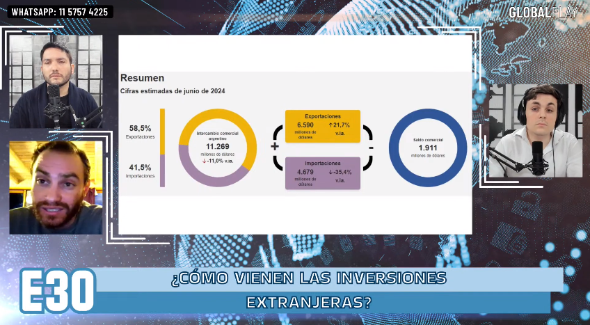 Los tres especialistas discutieron sobre el índice de la canasta comercial de junio, que fue positivo para las PYMES. Las importaciones se han normalizado, aunque algunas empresas aún dependen del mercado financiero para importar. Pedro anticipa balances positivos en la balanza comercial y señaló que Argentina en el futuro podría duplicar sus exportaciones en sectores como el agro, tecnológico, financiero y de recursos naturales, con ejemplos como el litio.