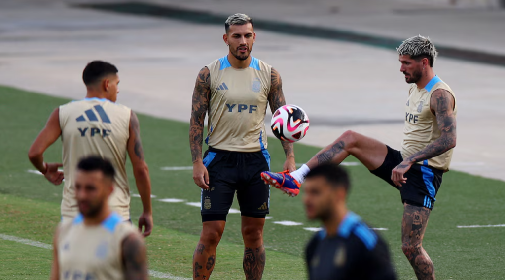 El segundo interrogante está instalado en el mediocampo: los que parecen tener un lugar asegurado son Rodrigo De Paul, Enzo Fernández y Giovani Lo Celso, aunque resta definir si el DT incluirá en esta zona a un volante de mayor contención o uno con características más ofensivas que se conecte en ataque con Lionel Messi y Julián Álvarez. La duda es entre Leandro Paredes y Thiago Almada, quien aportaría más verticalidad a la Albiceleste formando un tándem de ataque con la Pulga y la Araña.