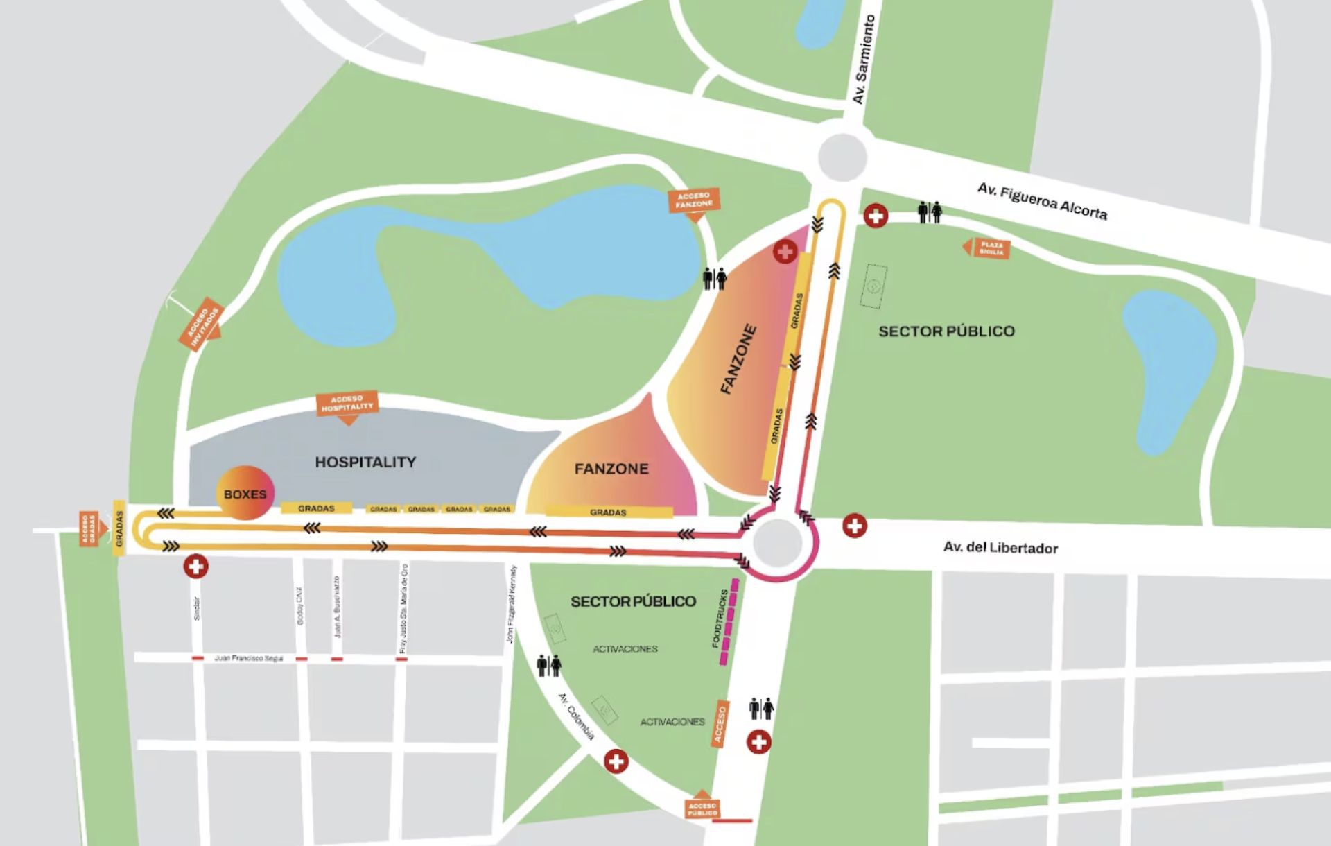 Este evento se desarrollará durante el día y contará con experiencias exclusivas para los fanáticos y asistentes como fans forum y shows musicales en vivo. En cuanto a la cantidad de público, habrá como mínimo 10 mil entradas en venta para tribunas, con las mejores ubicaciones posibles para ver el espectáculo y acceso a una Fan Zone sobre los Bosques de Palermo. Luego se dispondrán lugares de acceso libre sobre la avenida del Libertador y avenida Sarmiento.