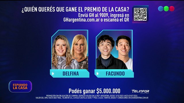 Facundo o Delfina, uno de ellos ganará una casa esta semana en Gran Hermano. La placa está abierta nuevamente y el voto es positivo.