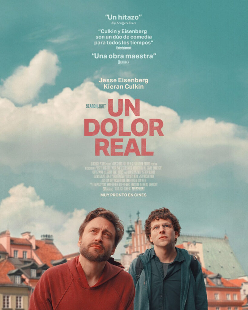- Un dolor real: el tierno y melancólico drama cómico sobre las duraderas secuelas generacionales del Holocausto, sigue a unos primos estadounidenses que en su día estuvieron muy unidos y que ahora, tras la muerte de su abuela, una superviviente del Holocausto, se descubren buscándose con torpeza durante una llamada «gira de patrimonio» por Polonia.