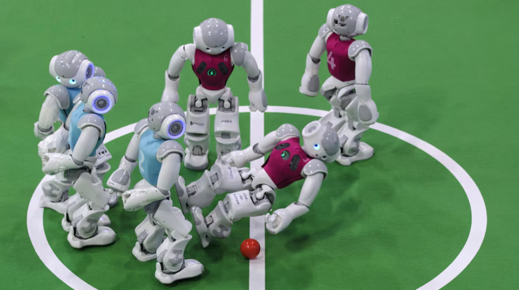Uno de los indicios más claros de este futuro es la RoboCup, una competencia internacional de robótica en la que equipos de robots juegan partidos de fútbol. Equipados con IA, sensores avanzados y sistemas de visión, estos robots son capaces de moverse por el campo, controlar el balón e incluso colaborar estratégicamente en equipo.
