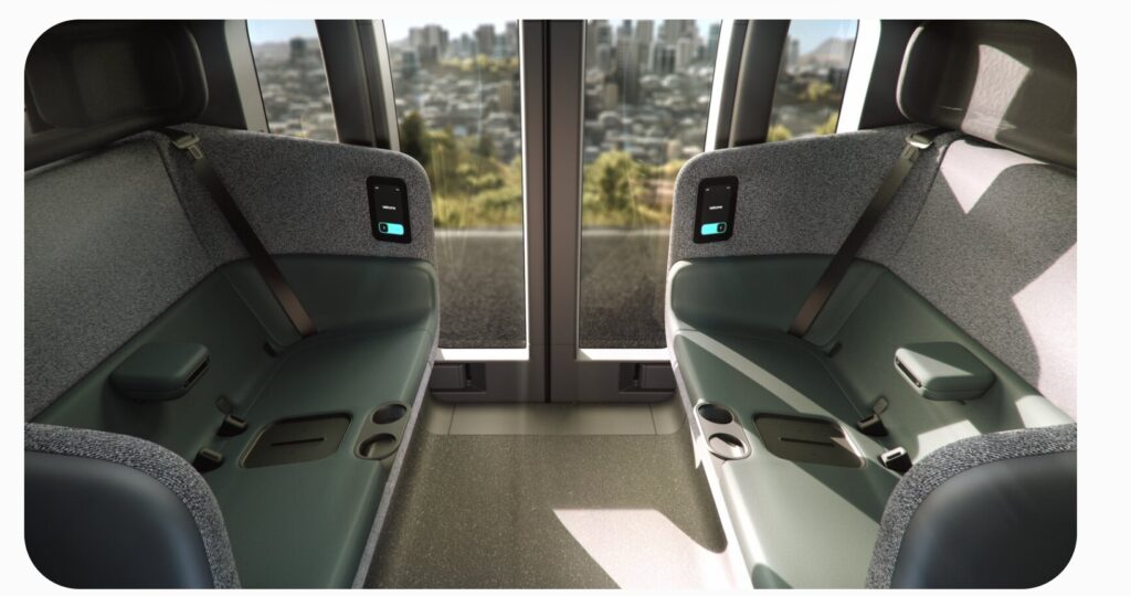 Es un vehículo completamente eléctrico creado para el transporte de hasta cuatro pasajeros y su diseño es autónomo, por ende carece de volante y asiento para el conductor, características que representan una innovación en el transporte urbano.