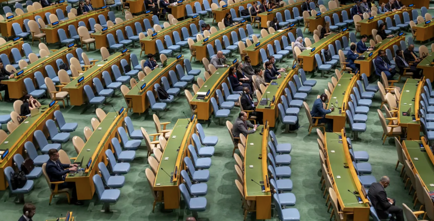 En el momento en que tomó la palabra, la sala había quedado prácticamente vacía. Una de las pocas delegaciones que permaneció en su lugar fue la argentina. Ayer el presidente Javier Milei se reunió con Netanyahu y le ratificó su incondicional apoyo.